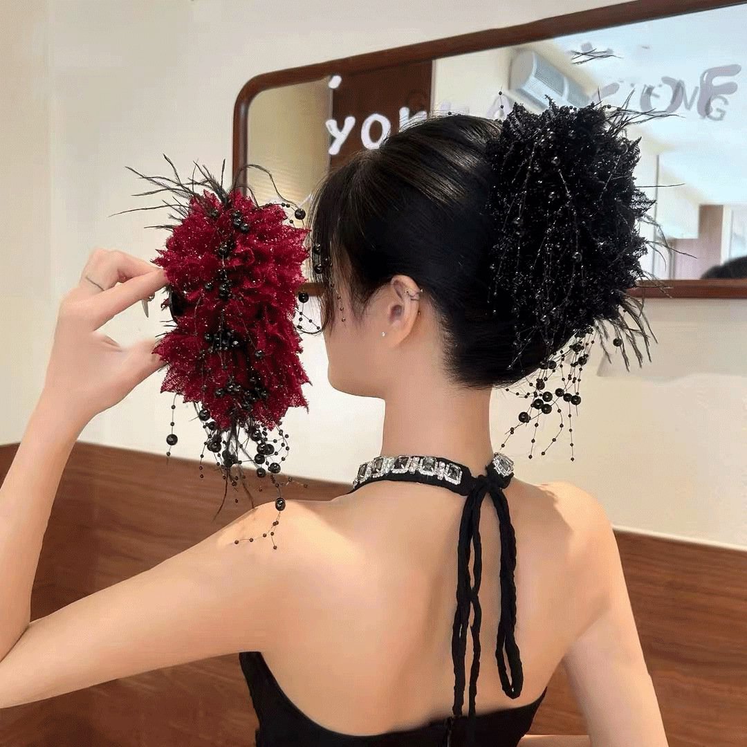 กิ๊บจับผมขนนกทรงดอกไม้พร้อมพู่